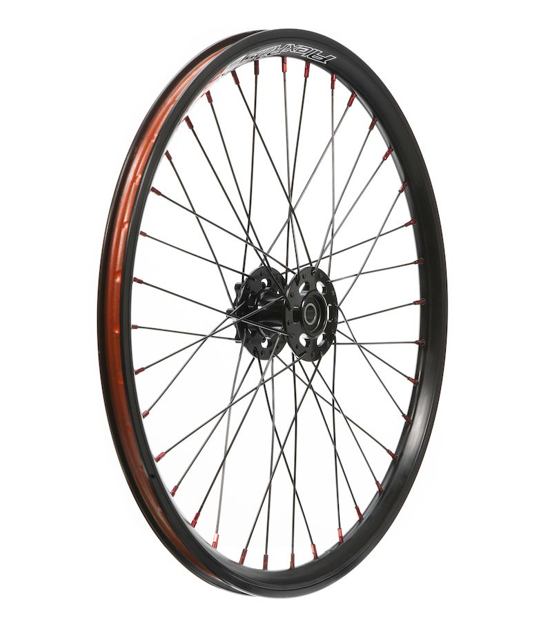 Our trikes are designed around a specific front wheel size, all our trikes except the Full Fat are optimised around 20” front wheels. The front end geometry is designed for this wheel size to eliminate brake steer and make the handling a perfect blend of responsiveness and self-centring. We strongly recommend against fitting other front wheel sizes to our trikes as it will change the geometry and introduce unwanted characteristics such as brake steer and very heavy handling.